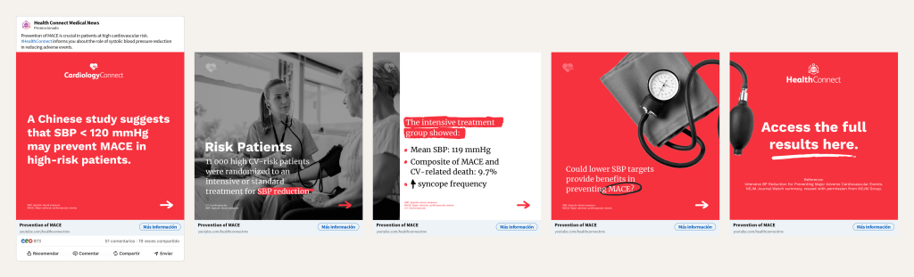 - Sequential engagement: Designed carousel progression to maintain physician’s interest through each panel while building toward a compelling call-to-action.